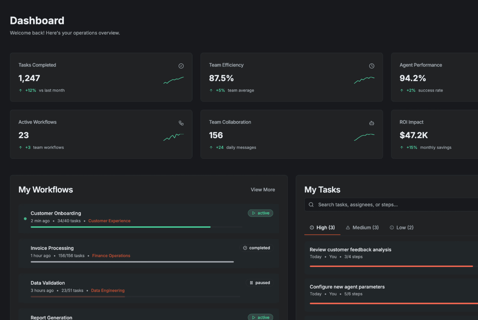 Agents · Teams · Tasks · Workflows · Dashboard
